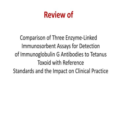 13. 13. OS16 Concordance between VNT* and ELISAs * VNT is the accepted assay for vaccine efficacy testing in the European Pharmacopoeia. 1 Assay Specifications Readout Sensitivity Specificity Accuracy LPBE-HIS Serial-dilution liquid- phase blocking ELISA. Uses HIS to reveal Titer 84.2 (75.2 – 91.0) 48.4 (37.7 – 59.1) 0.72 LPBE- Mab Serial-dilution liquid- phase blocking ELISA. Uses a mixture of Mab to reveal 84.6 (75.5 – 91.3) 48.6 (97.8 – 59.2) 0.73 IE Single dilution indirect ELISA OD value 71.2 (68.0 – 80.4) 84.4 (73.0 – 89.6) 0.75 AE Single dilution indirect ELISA with an Urea washing step 74.6 (64.5 – 83.3) 93.83 (85.0 – 98.8) 0.81 Specifications Readout Sensitivity Specificity Accuracy κ value Level agreem Serial-dilution liquid- phase blocking ELISA. Uses HIS to reveal Titer 84.2 (75.2 – 91.0) 48.4 (37.7 – 59.1) 0.72 0.34 Minim Serial-dilution liquid- phase blocking ELISA. Uses a mixture of Mab to reveal 84.6 (75.5 – 91.3) 48.6 (97.8 – 59.2) 0.73 0.35 Minim Single dilution indirect ELISA OD value 71.2 (68.0 – 80.4) 84.4 (73.0 – 89.6) 0.75 0.51 Wea Single dilution indirect ELISA with an Urea washing step 74.6 (64.5 – 83.3) 93.83 (85.0 – 98.8) 0.81 0.62 Wea ons Readout Sensitivity Specificity Accuracy κ value Level of agreement liquid- ELISA. reveal Titer 84.2 (75.2 – 91.0) 48.4 (37.7 – 59.1) 0.72 0.34 Minimal liquid- ELISA. of Mab l 84.6 (75.5 – 91.3) 48.6 (97.8 – 59.2) 0.73 0.35 Minimal indirect OD value 71.2 (68.0 – 80.4) 84.4 (73.0 – 89.6) 0.75 0.51 Weak indirect n Urea tep 74.6 (64.5 – 83.3) 93.83 (85.0 – 98.8) 0.81 0.62 Weak 1 Assay Specifications Readout Sensitivity Specificity Accuracy LPBE-HIS Serial-dilution liquid- phase blocking ELISA. Uses HIS to reveal Titer 84.2 (75.2 – 91.0) 48.4 (37.7 – 59.1) 0.72 LPBE- Mab Serial-dilution liquid- phase blocking ELISA. Uses a mixture of Mab to reveal 84.6 (75.5 – 91.3) 48.6 (97.8 – 59.2) 0.73 IE Single dilution indirect ELISA OD value 71.2 (68.0 – 80.4) 84.4 (73.0 – 89.6) 0.75 AE Single dilution indirect ELISA with an Urea washing step 74.6 (64.5 – 83.3) 93.83 (85.0 – 98.8) 0.81 Specifications Readout Sensitivity Specificity Accuracy κ value Level agreem Serial-dilution liquid- phase blocking ELISA. Uses HIS to reveal Titer 84.2 (75.2 – 91.0) 48.4 (37.7 – 59.1) 0.72 0.34 Minim Serial-dilution liquid- phase blocking ELISA. Uses a mixture of Mab to reveal 84.6 (75.5 – 91.3) 48.6 (97.8 – 59.2) 0.73 0.35 Minim Single dilution indirect ELISA OD value 71.2 (68.0 – 80.4) 84.4 (73.0 – 89.6) 0.75 0.51 Weak Single dilution indirect ELISA with an Urea washing step 74.6 (64.5 – 83.3) 93.83 (85.0 – 98.8) 0.81 0.62 Weak ons Readout Sensitivity Specificity Accuracy κ value Level of agreement liquid- ELISA. eveal Titer 84.2 (75.2 – 91.0) 48.4 (37.7 – 59.1) 0.72 0.34 Minimal liquid- ELISA. of Mab 84.6 (75.5 – 91.3) 48.6 (97.8 – 59.2) 0.73 0.35 Minimal indirect OD value 71.2 (68.0 – 80.4) 84.4 (73.0 – 89.6) 0.75 0.51 Weak indirect n Urea ep 74.6 (64.5 – 83.3) 93.83 (85.0 – 98.8) 0.81 0.62 Weak
