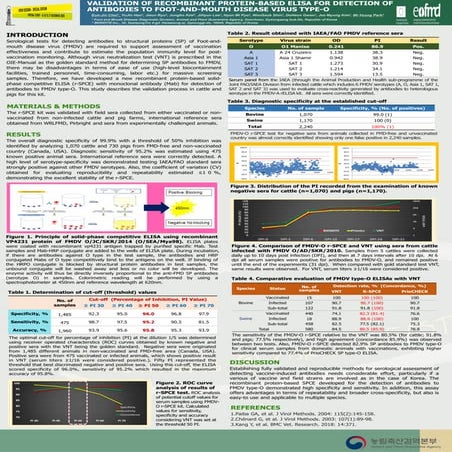8. 8. OS16 ICAR-Directorate of FMD Mukteshwar-263138, India r3AB3 ELISA r3AB3 ELISA Total Positive Negative FMDV RNA (OPF) Positive 4 10 14 FMDV RNA (OPF) Negative 0 56 56 Total 4 66 70 FMDV RNA (tissue) FMDV RNA (tissue) Total Positive Negative FMDV RNA (OPF) Positive 14 0 14 FMDV RNA (OPF) Negative 4 52 56 Total 18 52 70 r3AB3 ELISA r3AB3 ELISA Total Positive Negative FMDV RNA (tissue) Positive 4 14 18 FMDV RNA (tissue) Negative 0 52 52 Total 4 66 70