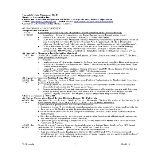 V Shyamala Resume