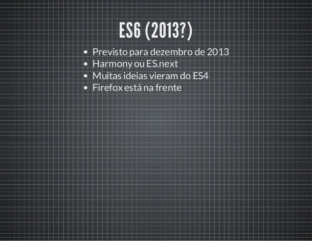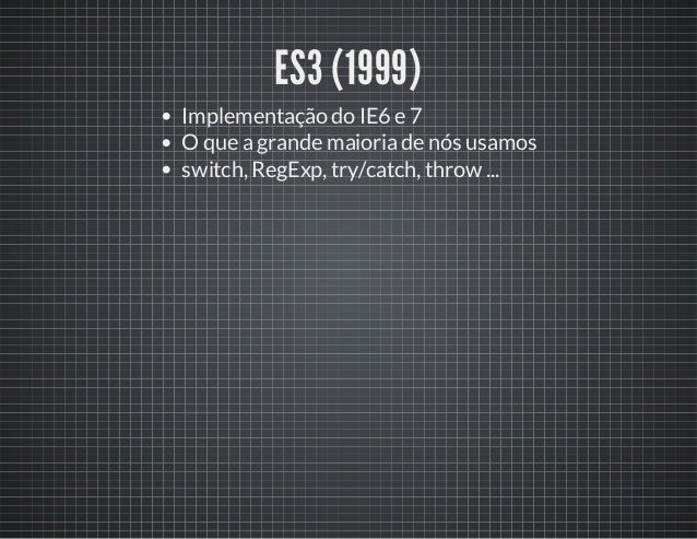 11. 11. ES3 (1999) Implementação do IE6 e 7 O que agrande maioriade nós usamos switch, RegExp, try/catch, throw ...