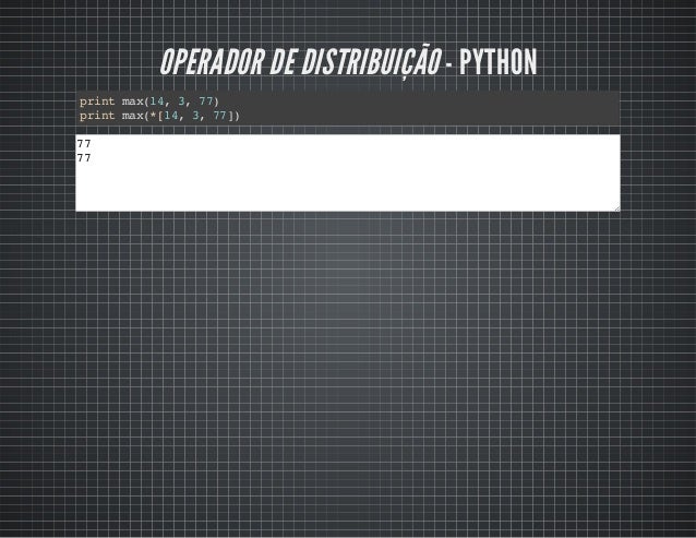 20. 20. OPERADOR DE DISTRIBUIÇÃO - PYTHON printmax(14,3,77) printmax(*[14,3,77]) 77 77