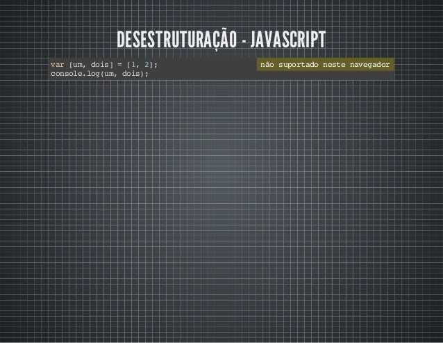 30. 30. DESESTRUTURAÇÃO - JAVASCRIPT var[um,dois]=[1,2]; console.log(um,dois); nãosuportadonestenavegador