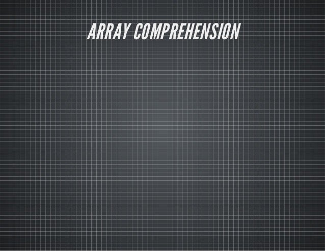 41. 41. ARRAY COMPREHENSION - JAVASCRIPT //ES5 [1,4,2,3,-8].filter(function(i){returni<3}); //ES6 [for(iof[1,4,2,3,-8])if(i<3)i]; nãosuportadonestenavegador
