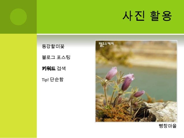 3. 3. 사진 활용 동강할미꽃 블로그 포스팅 키워드 검색 Tip! 단순함 뼝창마을