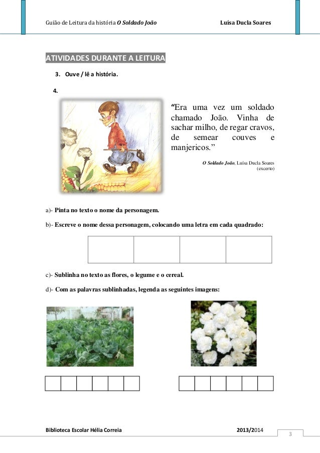 guião de leitura do livro "O Soldado João", de Luísa Ducla Soares para o 1º e 2º ano e para comemorar o dia 25 de abril.
