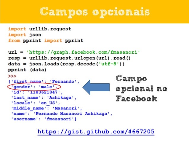 16. 16. Campos opcionais https://gist.github.com/4667205 Campo opcional no Facebook