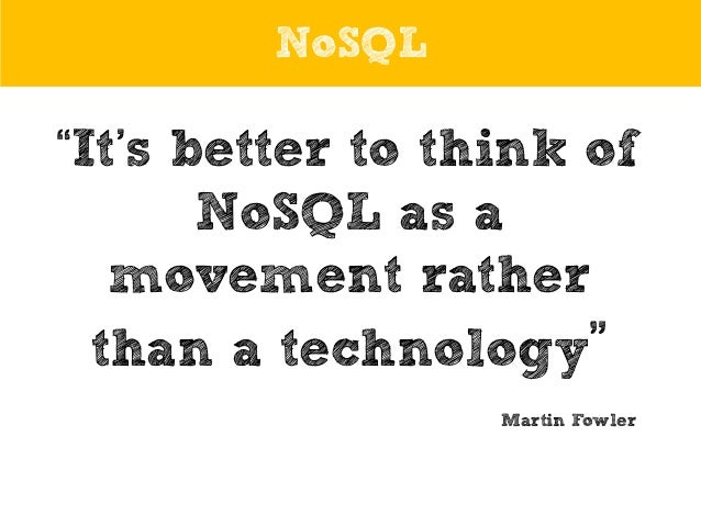 23. 23. “It’s better to think of NoSQL as a movement rather than a technology” Martin Fowler NoSQL