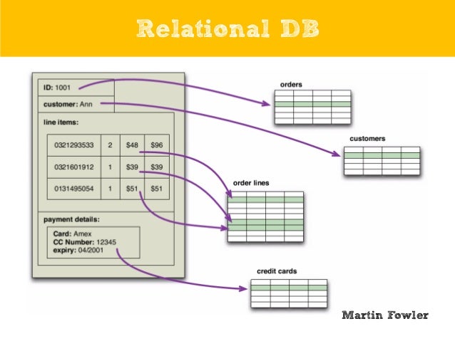 29. 29. • The difference between the relational model and the in- memory data structures (Fowler) • Limitations of relational DB: values only in tuples • We need a more complex structure than a set of tuples as a data unit Impedance mismatch