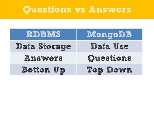 32. 32. Questions vs Answers RDBMS MongoDB Data Storage Data Use Answers Questions Botton Up Top Down