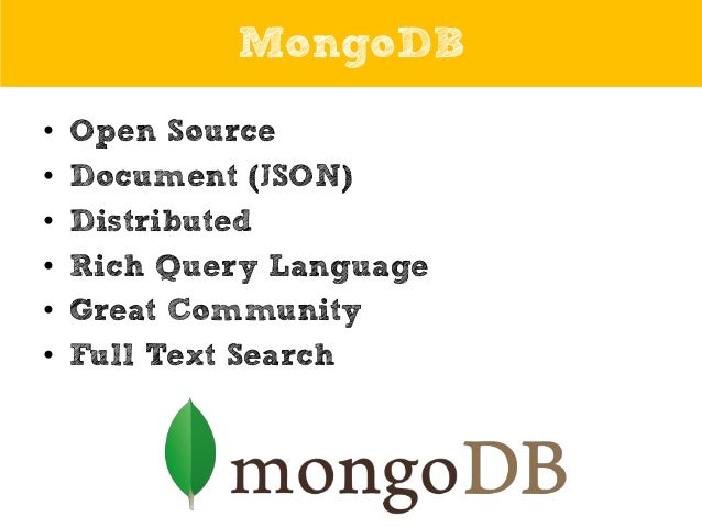 47. 47. • Open Source • Document (JSON) • Distributed • Rich Query Language • Great Community • Full Text Search MongoDB