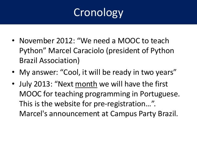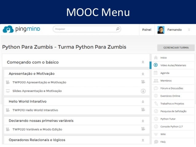 InfoQ presentation at TDC (portuguese): http://www.infoq.com/br/presentations/python-para-zumbis-primeiro-mooc