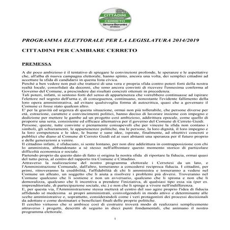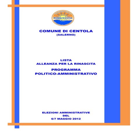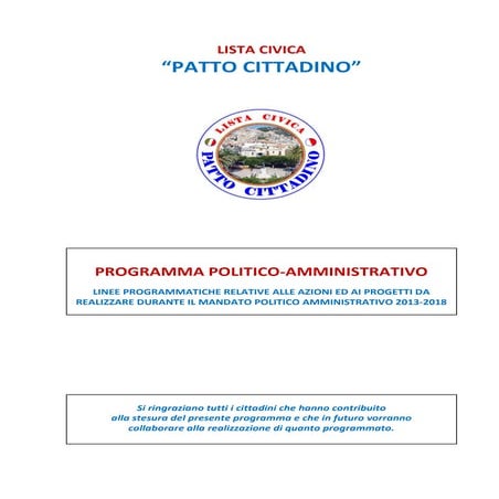 5. 5. 5 CONTENUTI Declinare sul piano locale le battaglie nazionali di Forza Italia Siamo convinti che rilanciare sul piano locale molte battaglie condotte sul piano nazionale da Forza Italia possa essere una strategia efficace per raggiungere il successo elettorale. Dalla grande lotta contro l’eccessiva oppressione fiscale alla denuncia della malagiustizia, dalla forte richie- sta di taglio della spesa pubblica improduttiva alla difesa della famiglia, sono davvero tante infatti le tematiche di cui il nostro movimento si è da sempre fatto portavoce. Tutte queste battaglie politiche, a partire in particolare dal taglio delle tasse, sono particolarmente sentite dai cittadini italiani, come dimo- strano del resto diversi sondaggi e come sanno bene tutti i politici di Forza Italia a contatto con gli elettori sul territorio. Affrontare i problemi sentiti dai cittadini del proprio comune Più gli elettori sentiranno i nostri candidati vicini ai loro particolari problemi e necessità, più probabilità ci saranno che il giorno delle ele- zioni sceglieranno di votare per Forza Italia. I candidati alla carica di sindaco e di consigliere comunale dovranno tenere ben presente questo principio nel momento in cui inizieranno a scrivere i programmi per la propria città. Gli elettori si aspettano programmi concreti, vicini ai problemi della propria zona e del proprio quartiere; programmi semplici e chiari che facciano capire con fermezza l’intenzione dei candidati di Forza Italia di parlare di questioni urgenti e ben note ai cittadini. Prima di scrivere il programma sarà quindi utile che il singolo candi- dato analizzi nel dettaglio con i propri sostenitori i principali problemi locali, organizzando magari manifestazioni ed incontri in cui ascoltare i cittadini e le loro esigenze.