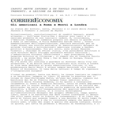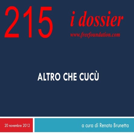 17. 17. 17 “Ecco le carte inedite sul golpe anti Cav” L’intervista al Giornale di Stefano Zurlo a RENATO BRUNETTA tre anni dalla vorticosa bufera del 2011 ancora annaspiamo nelle beghe da cortile e nessuno ha chiesto all`ex segretario al Tesoro Timothy Geithner di dettagliare le sue parole incendiarie. Parole decisive per individuare le linee del complotto che ne1 2011, attraverso i rendimenti impazziti dei titoli di Stato italiani, portò alle dimissioni di Silvio Berlusconi. Un complotto – termine sintetico per indicare la convergenza di diversi soggetti – che passò anche dalle agenzie di rating: furono gli arbitri indiscussi della finanza internazionale a dare il colpo di grazia al sistema Italia. L`indagine della Procura di Trani è la scoperta in presa diretta della manipolazione del mercato. Renato Brunetta, capogruppo di Forza Italia alla Camera, ha letto attentamente le carte dell`inchiesta pugliese ed è stato il primo a sottolinearne l`importanza. L`economista veneziano firma la prefazione al libro, allegato al Giornale di domani, che contiene la requisitoria del pm: Michele Ruggiero cerca di dimostrare come il giudizio delle agenzie, a cominciare da Standard`s &Poors, fosse inventato di sana pianta. Quasi la pistola fumante del complotto. Onorevole Brunetta, questo è il quarto libro che lei dedica alla caduta del Cavaliere. Perché interessarsi anche al lavoro dei pm di Trani? «Perché la requisitoria, finora inedita, è impressionante. Non c`è un teorema, non ci sono tesi ideologiche, ma fatti a cui è stata applicata un`analisi rigorosa. Secondo il gup che ha disposto il processo per gli imputati c`è l`evidenza della manipolazione del mercato». Pochi hanno dato peso a questa indagine. «Ovvio. Una piccola procura di provincia contro colossi il cui soffio fa traballare il mondo. I giornaloni e le tv hanno trattato la vicenda come qualcosa di velleitario e folcloristico. Chi leggerà la requisitoria vedrà che è materia esplosiva e serissima. Il tema è cruciale per la vita quotidiana della gente, per la nostra democrazia». A