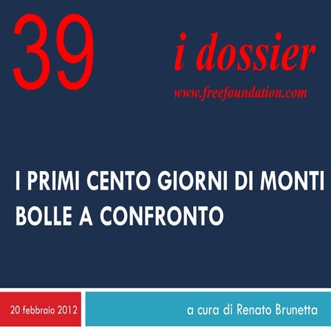 5. 5. 5 RENATO BRUNETTA “Il Grande imbroglio 1-2-3” (2012-2013-2014) Alla vigilia del G20 di Cannes del 3 e 4 novembre 2011, il presidente della Repubblica, Giorgio Napolitano, si rifiuta di firmare il decreto “Sviluppo” che dava attuazione agli impegni presi dal governo italiano con la Commissione e il Consiglio europeo nella lettera del 26 ottobre 2011, costringendo il presidente del Consiglio italiano, Silvio Berlusconi, a recarsi al vertice “a mani vuote”. Brunetta ricostruisce la vicenda qualche mese dopo con un articolo sul Giornale (6 febbraio 2012) e il giorno dopo il Consigliere del presidente della Repubblica per la stampa e la comunicazione, dottor Pasquale Cascella, con lettera al direttore del Giornale, completa il quadro rivelando che la decisione del presidente della Repubblica di non firmare il decreto Sviluppo era stata presa nel corso di un incontro con l’allora ministro dell’Economia e delle finanze, Giulio Tremonti. Scrive Cascella: “Il Capo dello Stato ricevette il ministro dell'economia (Giulio Tremonti) prima della riunione del Consiglio dei Ministri del 2 novembre 2011”.