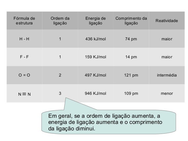 Teoria da ligação covalente, pârametros da ligação covalente, energia de ligação,