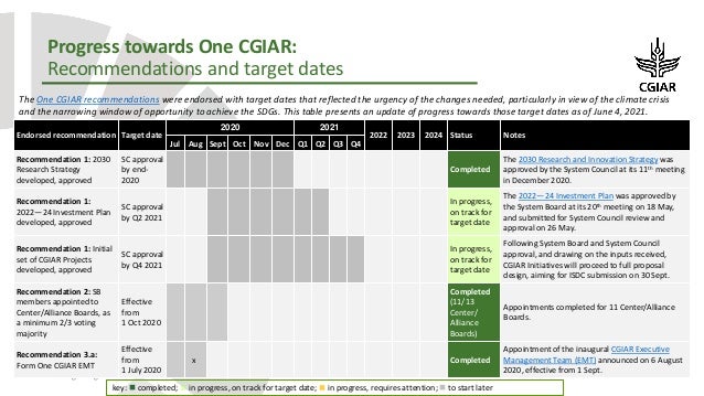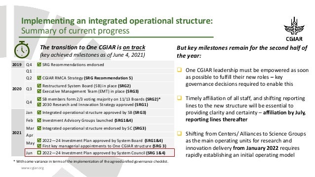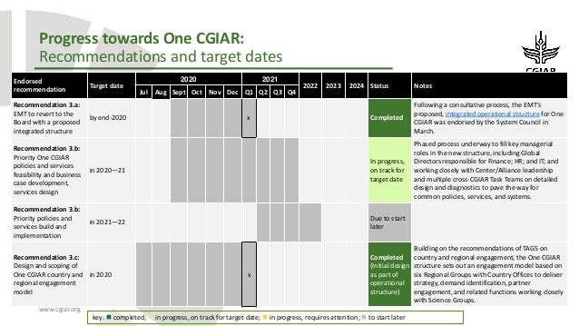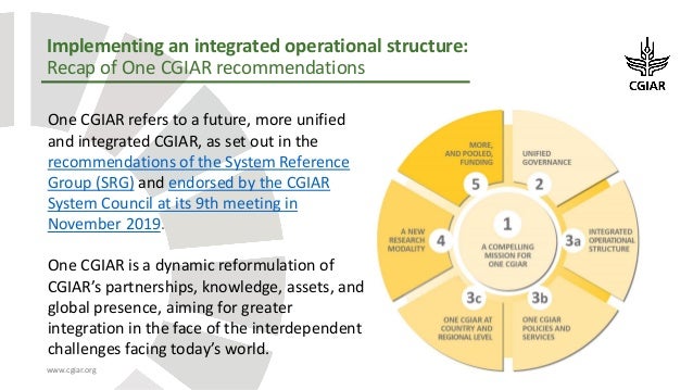 The Agenda and documents related to the meeting can be found below. Implementing the recommendations endorsed by the System Council entails profound change across CGIAR, addressing culture, values, people, policies, and systems.