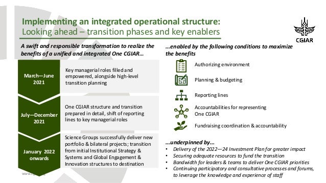 and integrated CGIAR, as set out in the