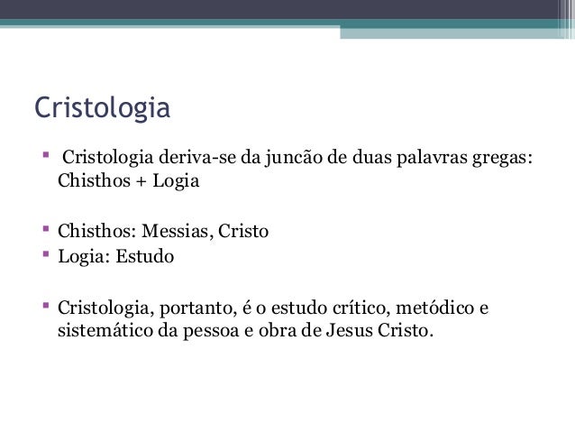 14. 14. Cristologia  Cristologia deriva-se da juncão de duas palavras gregas: Chisthos + Logia  Chisthos: Messias, Cristo  Logia: Estudo  Cristologia, portanto, é o estudo crítico, metódico e sistemático da pessoa e obra de Jesus Cristo.