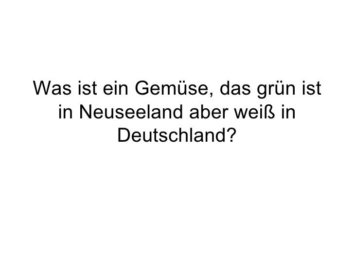 5. 5. Was ist ein Gemüse, das grün ist in Neuseeland aber weiß in Deutschland?