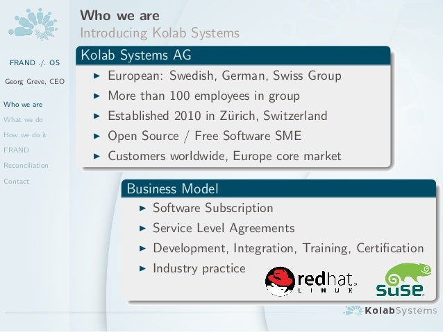 Presentation at Nov 22nd workshop at EC workshop on FRAND and Open Source by Kolab Systems AG.