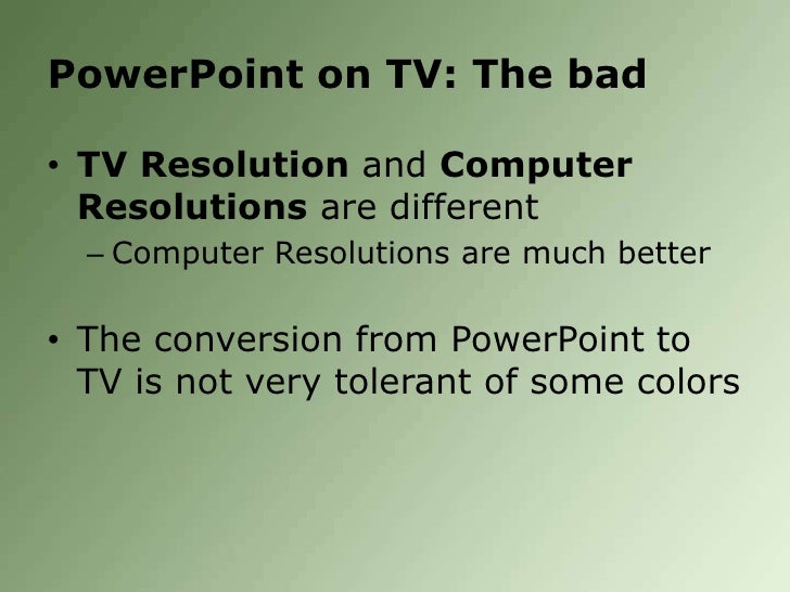 A basic presentation on effective PowerPoint presentations and displaying PowerPoint on TV