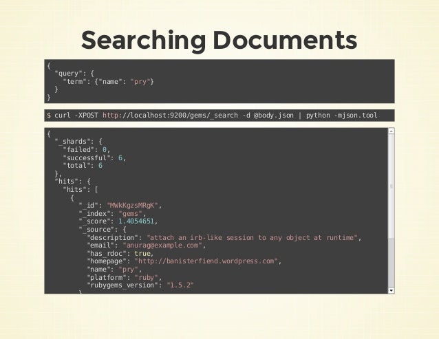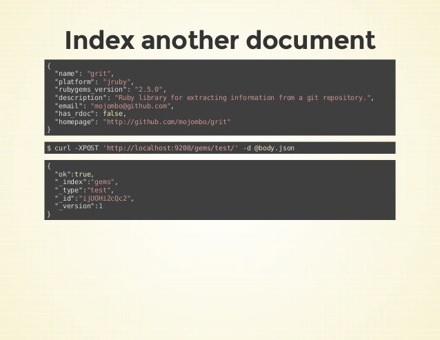 Slides from Elasticsearch workshop conducted at The Fifth Elephant 2013.