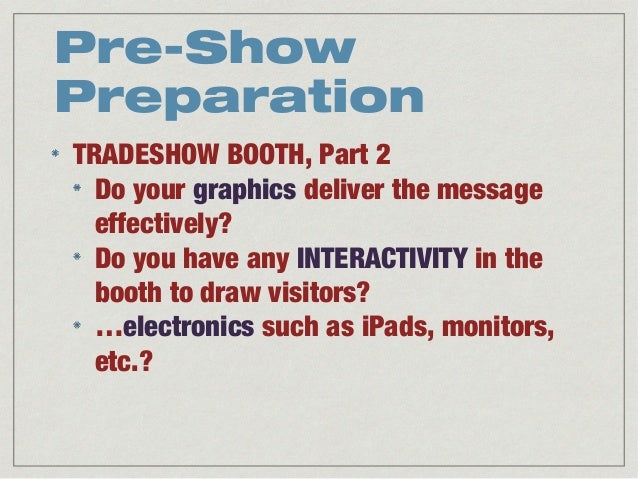 Learn tradeshow marketing and fill in the holes in your tradeshow marketing strategy. From pre-show preparation to show execution to post-show follow up, it's all here!