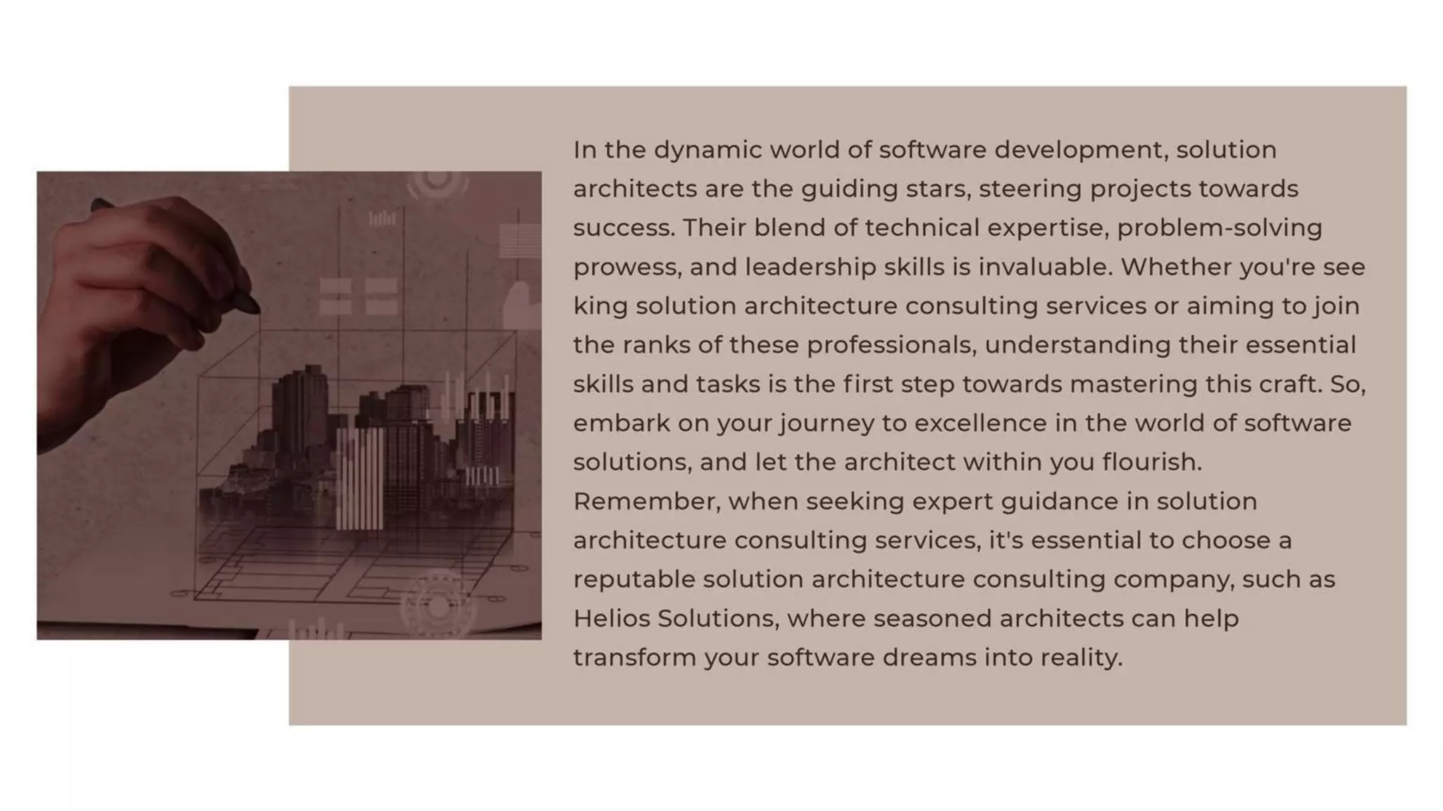 The document outlines the key duties and responsibilities of a software solution architect, emphasizing the importance of a strategic mindset for success in the role. It serves as a comprehensive guide to software solution architecture, including consulting services. The content provides insights into mastering the craft of solution architecture.