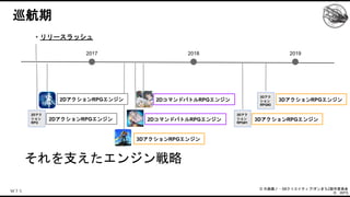 19. 19. 巡航期 それを支えたエンジン戦略 ・リリースラッシュ 2017 2018 2019 2DアクションRPGエンジン 3DアクションRPGエンジン 2DコマンドバトルRPGエンジン 2DアクションRPGエンジン 2DコマンドバトルRPGエンジン 3DアクションRPGエンジン 3DアクションRPGエンジン 2Dアク ション RPG 3Dアク ション RPG#1 3Dアク ション RPG#2 ©️ 大森藤ノ・SBクリエイティブ/ダンまち2製作委員会 ©️ WFS