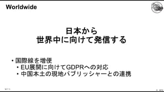 24. 24. Worldwide • 国際線を増便 • EU展開に向けてGDPRへの対応 • 中国本土の現地パブリッシャーとの連携 日本から 世界中に向けて発信する ©️ WFS