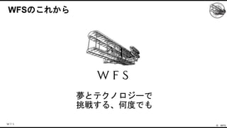 5. 5. WFS (Wright Flyer Studios) ライト兄弟による人類初の 有人飛行機(ライト・フライヤー号)に由来 常識にとらわれず、夢とテクノロジーで挑戦 ©️ WFS