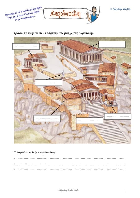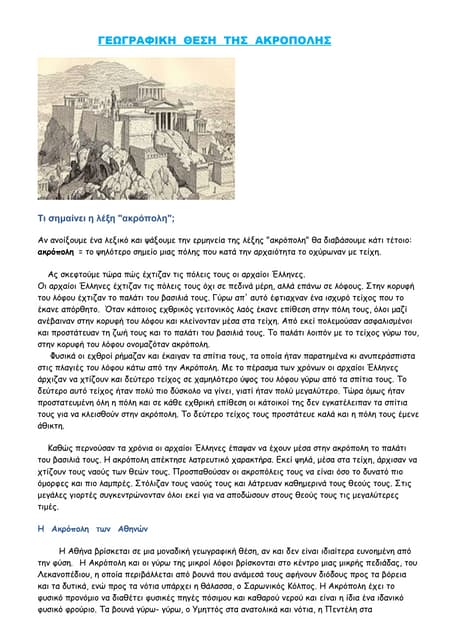 Τι σημαίνει η λέξη «ακρόπολη» ακρόπολη: το ψηλότερο σημείο μιας πόλης που κατά την αρχαιότητα το οχύρωναν με τείχη.