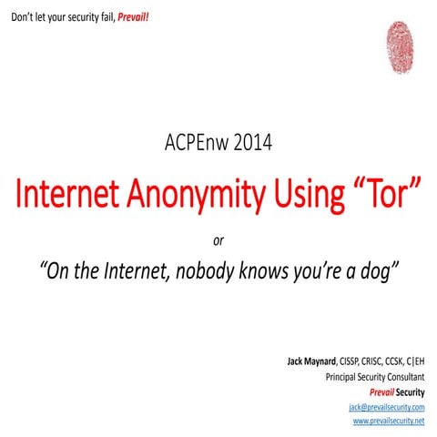• TOR provides anonymity