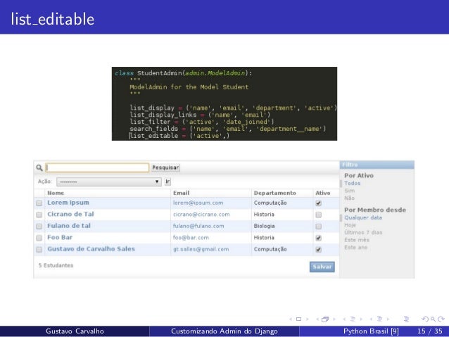 15. 15. list editable Gustavo Carvalho Customizando Admin do Django Python Brasil [9] 15 / 35