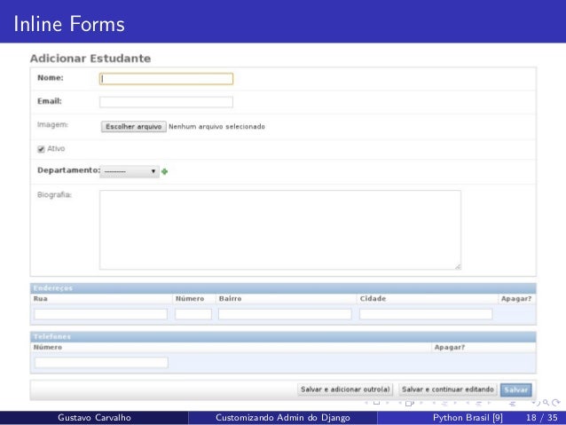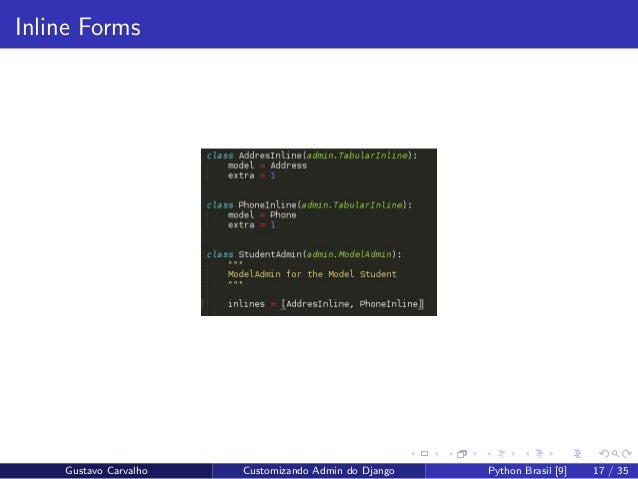 17. 17. Inline Forms Gustavo Carvalho Customizando Admin do Django Python Brasil [9] 17 / 35