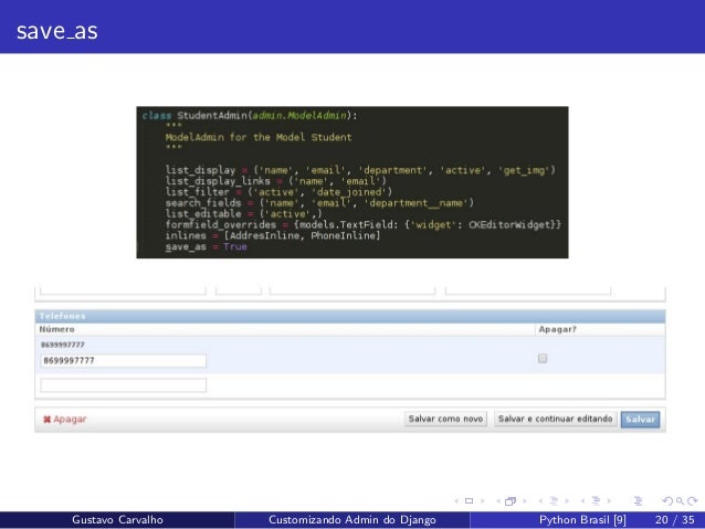 20. 20. save as Gustavo Carvalho Customizando Admin do Django Python Brasil [9] 20 / 35