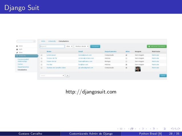 28. 28. Django Suit http://djangosuit.com Gustavo Carvalho Customizando Admin do Django Python Brasil [9] 28 / 35