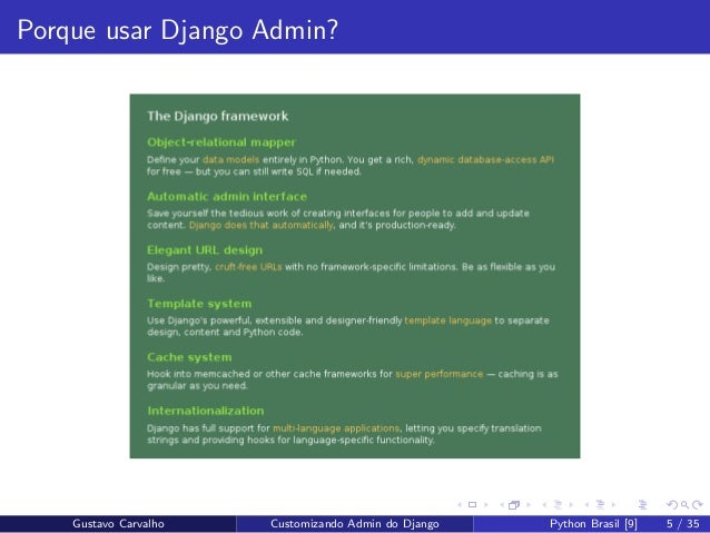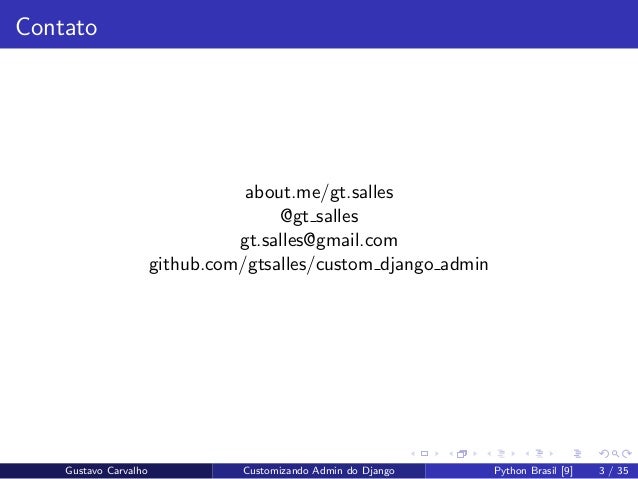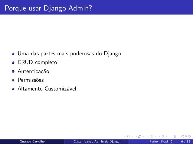 9. 9. Gustavo Carvalho Customizando Admin do Django Python Brasil [9] 9 / 35