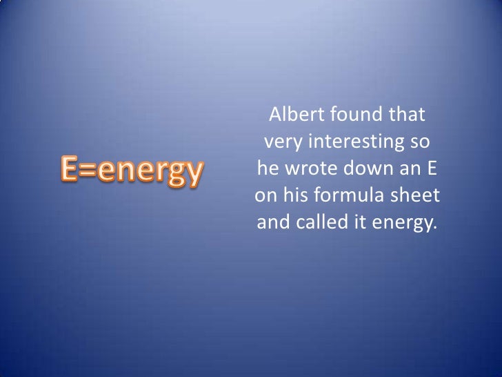10. 10. Albert found that very interesting so he wrote down an E on his formula sheet and called it energy.<br />E=energy <br />