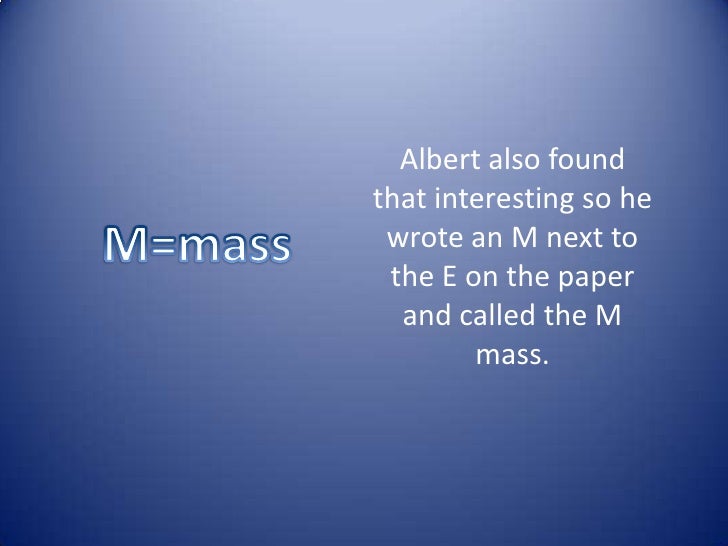 13. 13. Albert also found that interesting so he wrote an M next to the E on the paper and called the M mass. <br />M=mass <br />