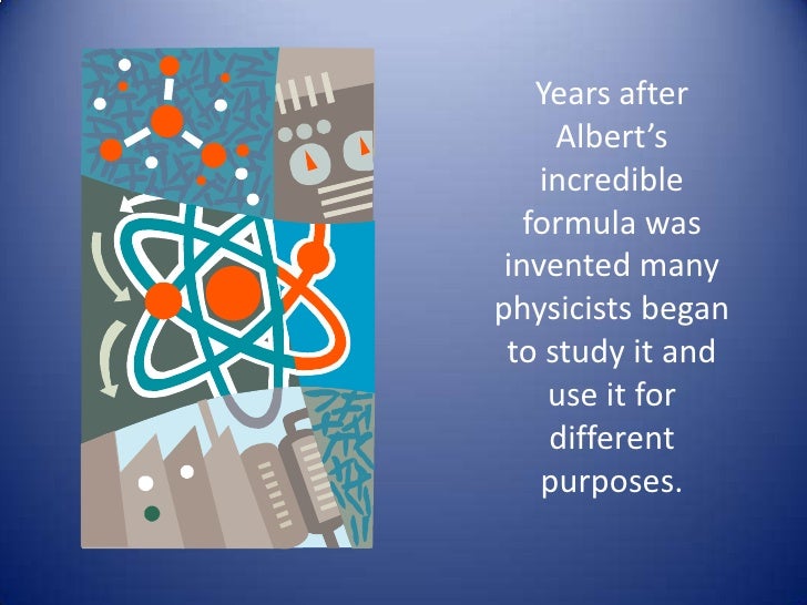 24. 24. Years after Albert’s incredible formula was invented many physicists began to study it and use it for different purposes. <br />