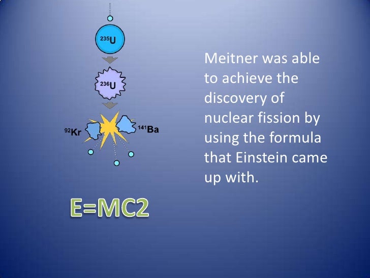 28. 28. Meitner was able to achieve the discovery of nuclear fission by using the formula that Einstein came up with. <br />E=MC2<br />