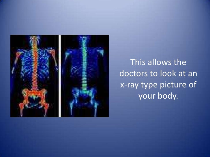 34. 34. This allows the doctors to look at an x-ray type picture of your body. <br />