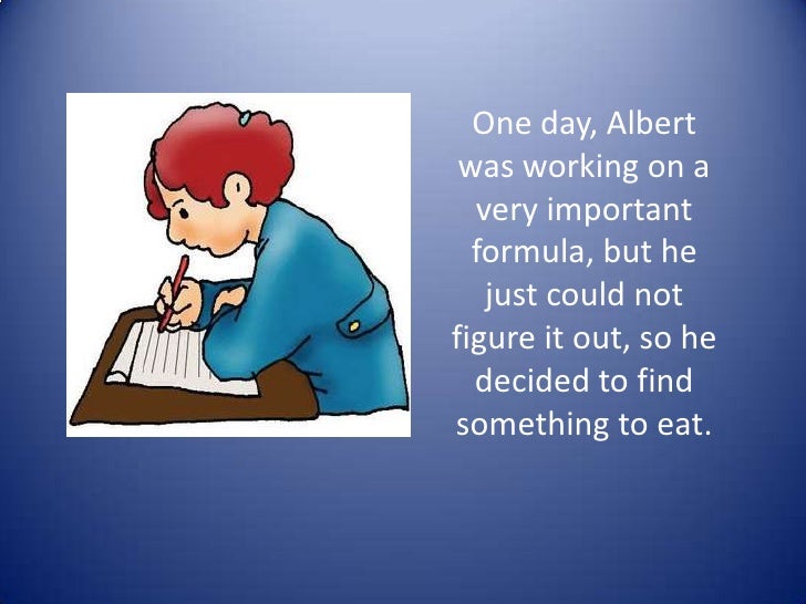 4. 4. One day, Albert was working on a very important formula, but he just could not figure it out, so he decided to find something to eat. <br />