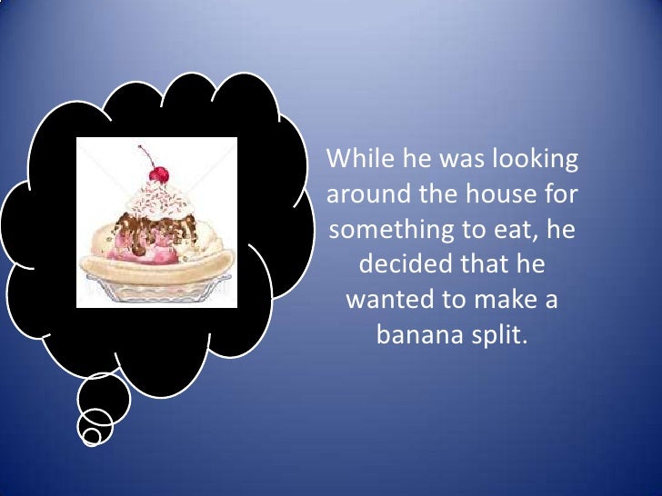 5. 5. While he was looking around the house for something to eat, he decided that he wanted to make a banana split. <br />