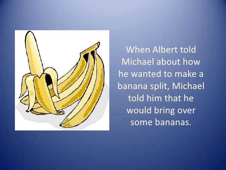 8. 8. When Albert told Michael about how he wanted to make a banana split, Michael told him that he would bring over some bananas.<br />