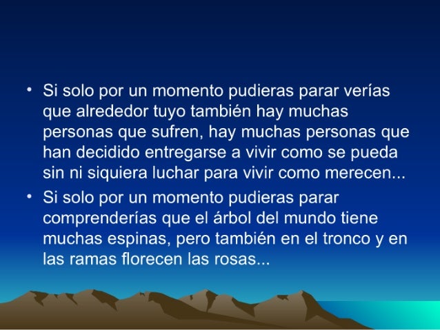 3. 3. ° Si solo por un momento pudieras parar verías que alrededor tuyo también hay muchas personas que sufren, hay muchas personas que han decidido entregarse a vivir como se pueda sin ni siquiera luchar para vivir como merecen. .. ° Si solo por un momento pudieras parar comprenderías que el árbol del mundo tiene muchas espinas, pero también en el tronco y en las ramas florecen las rosas. ..