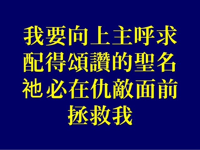 3. 3. 我要向上主呼求 配得頌讚的聖名 必在仇敵面前祂 拯救我