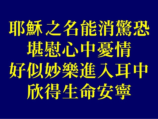 50. 50. 耶 之名能消驚恐穌 堪慰心中憂情 好似妙樂進入耳中 欣得生命安寧
