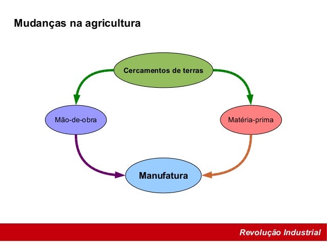 16. 16. Revolução Industrial O modelo de agricultura herdado pela Inglaterra era o medieval, onde haviam os servos que trabalhavam em terras comunais, produzindo para a comunidade. Havia menos controle sobre a propriedade. Mudanças na agricultura